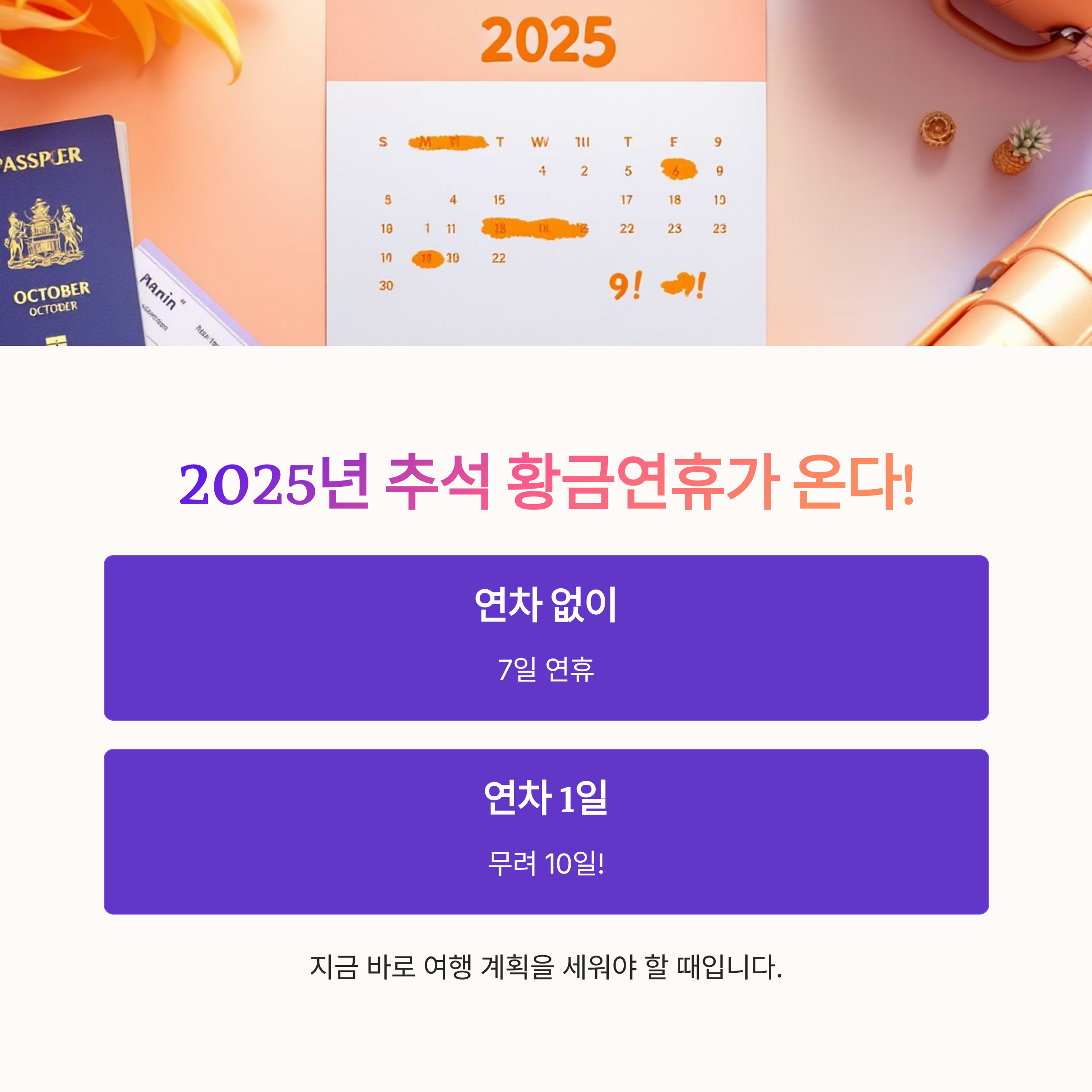 2025년 추석은 개천절과 한글날까지 이어지는 그야말로 '역대급 황금연휴'죠!