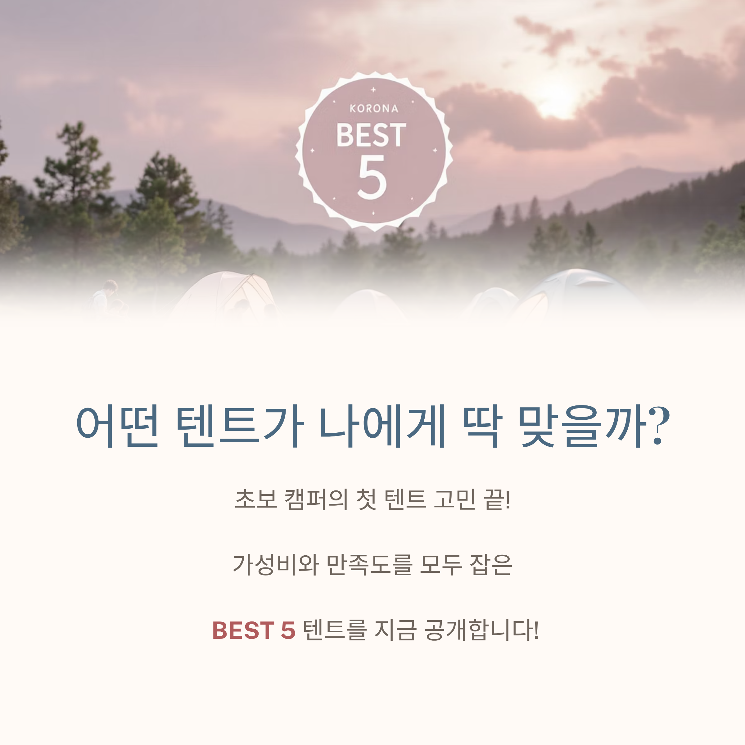 **실패 없는 첫 텐트 구매를 위한 'BEST 5'**를 선정해 봤습니다!