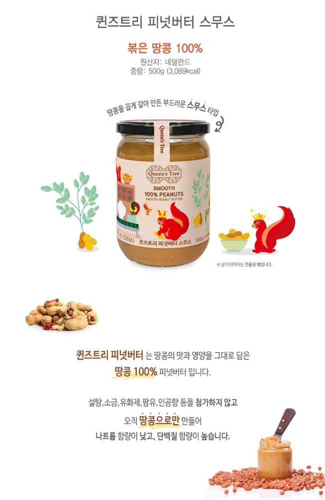 퀸즈트리 피넛버터 스무스, 500g, 1개