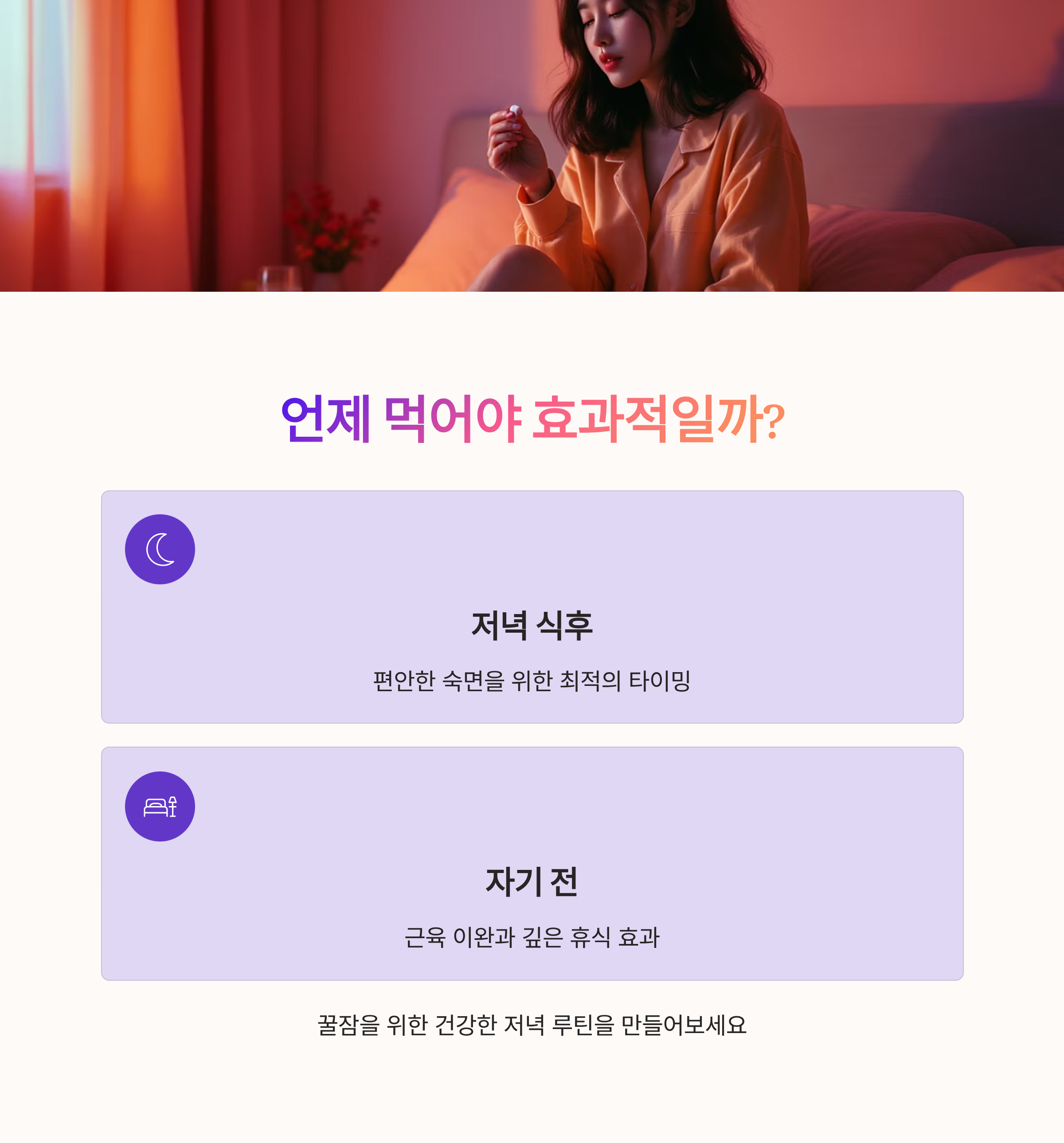 부작용 예방: 간혹 아침에 섭취 시 나른함이나 졸음을 유발할 수 있어 저녁 섭취가 권장됩니다.