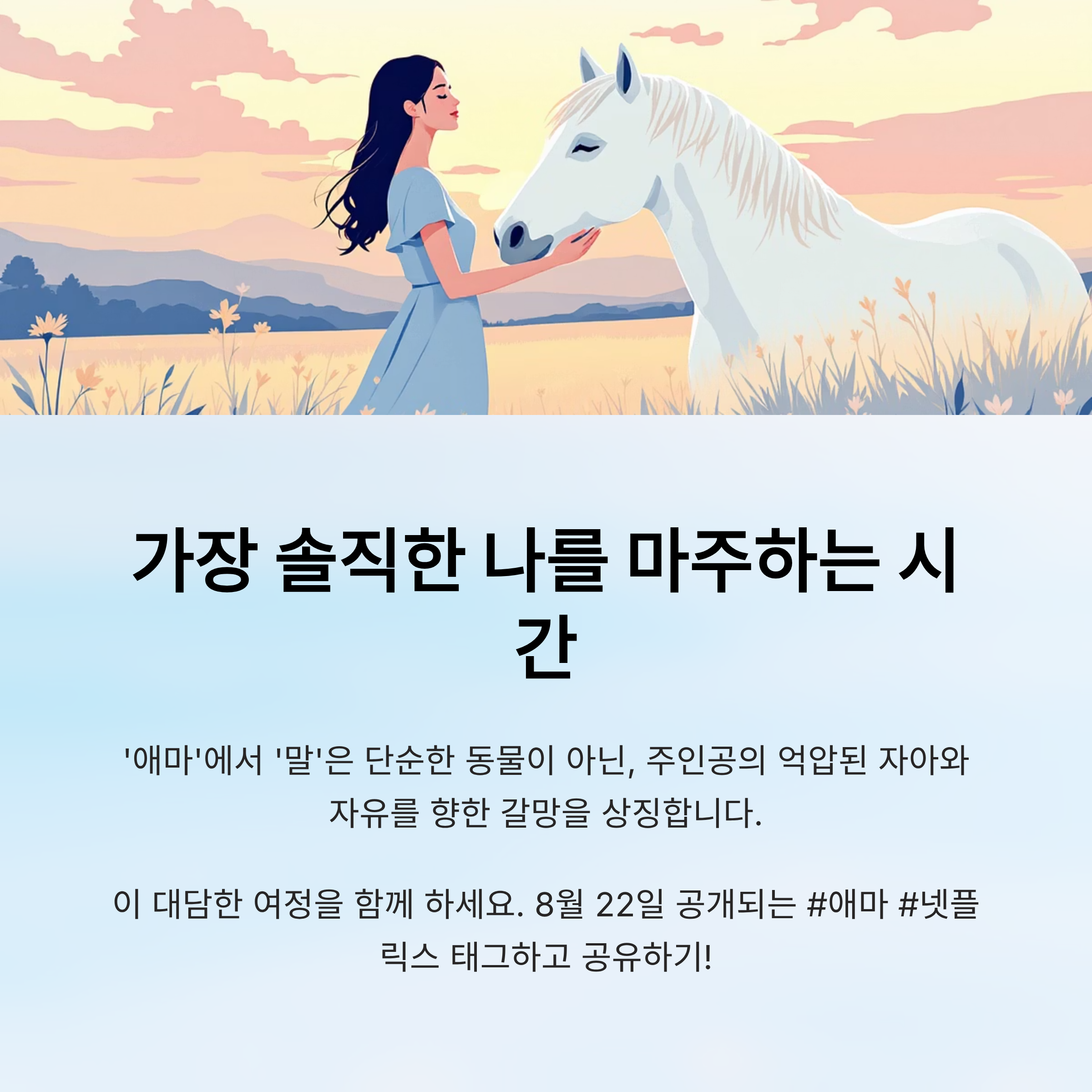 2. 감각적인 미장센: 인물의 심리를 상징하는 세련된 건축 디자인과, 자유를 향해 질주하는 말의 이미지가 교차되며 한 편의 영화 같은 영상미를 선사할 거예요.