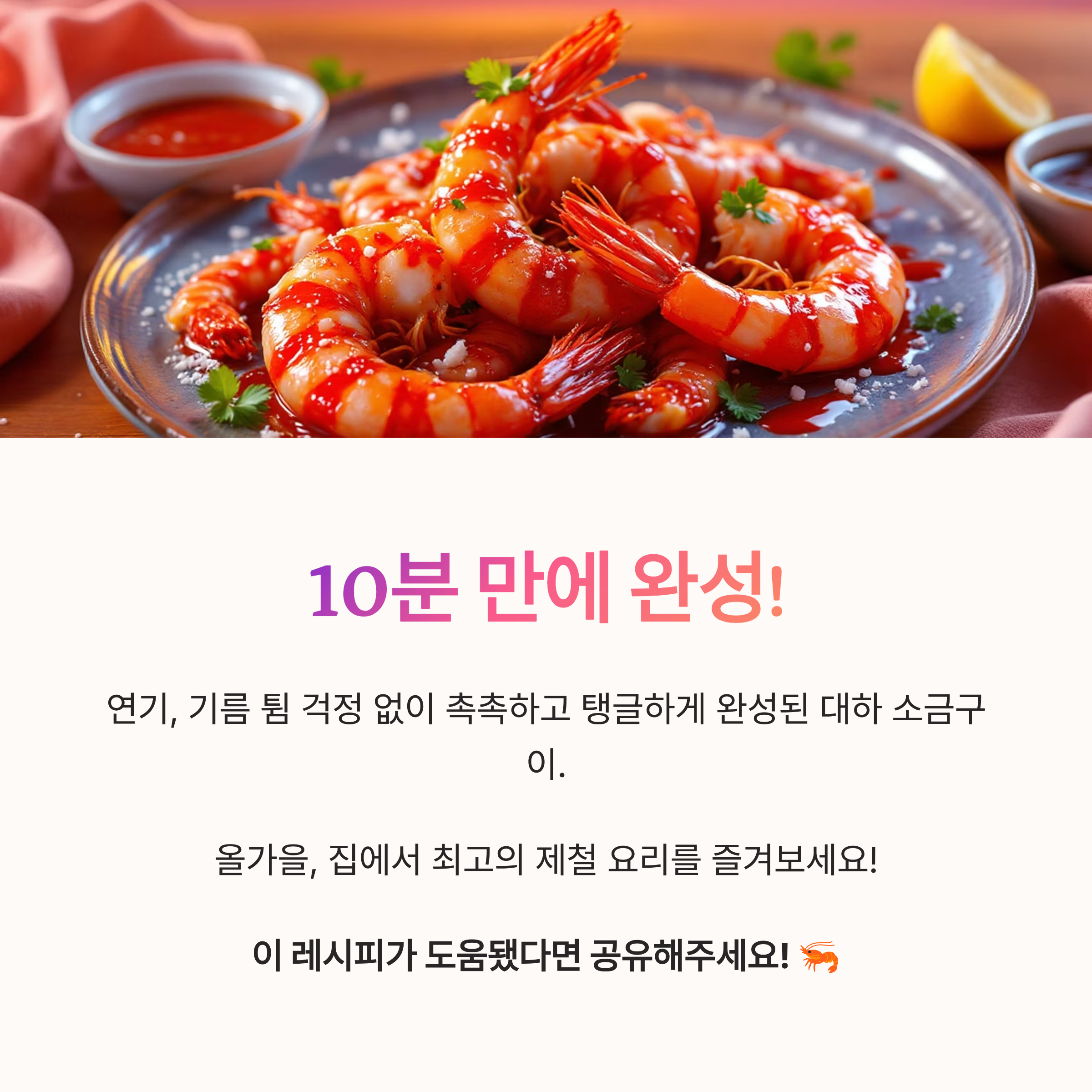 🎯 대하구이 소금구이, 집에서 10분 만에 펜션 맛 그대로 내는 비법
