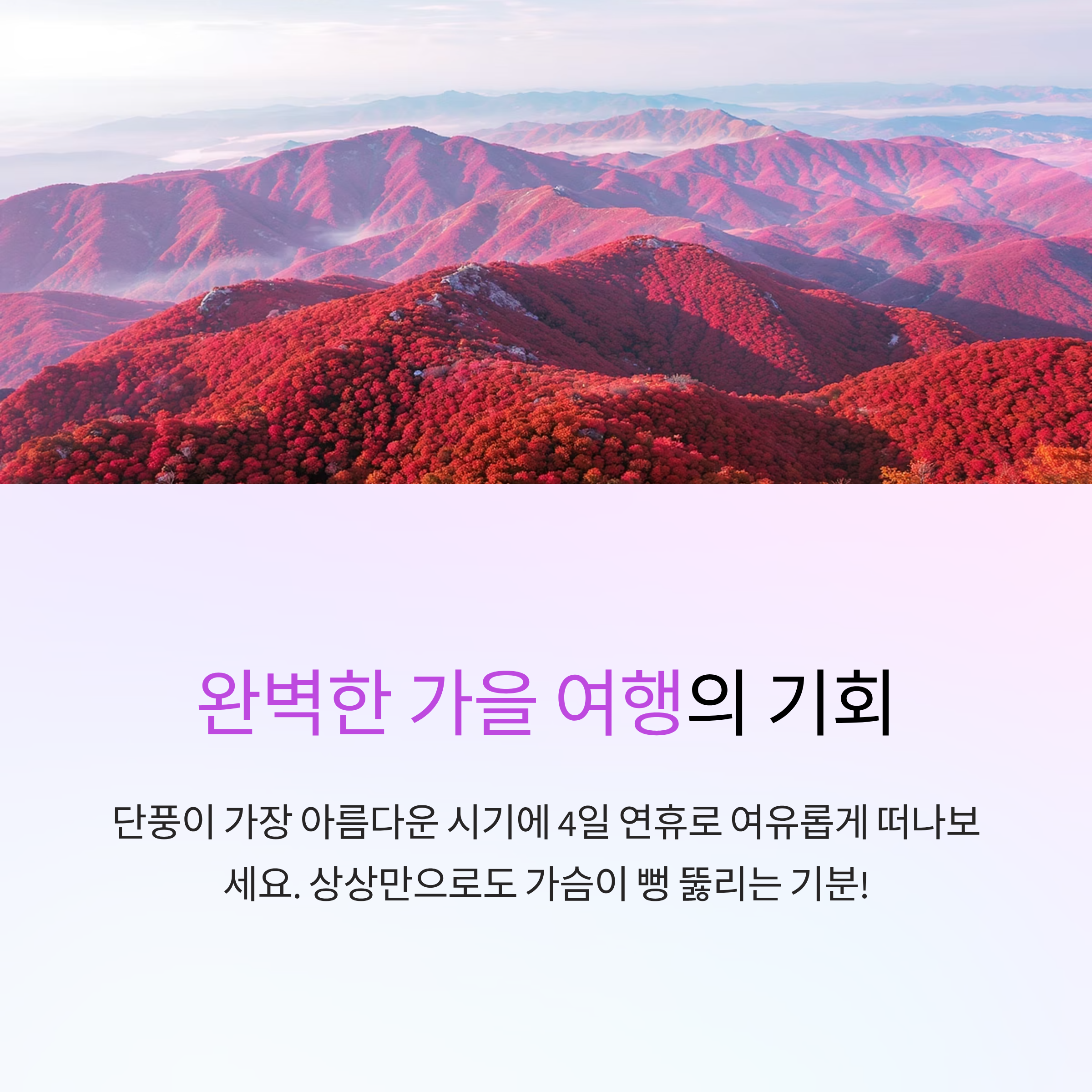완벽한 가을여행 찬스: 단풍이 절정인 시기, 3박 4일 여행 계획 가능!