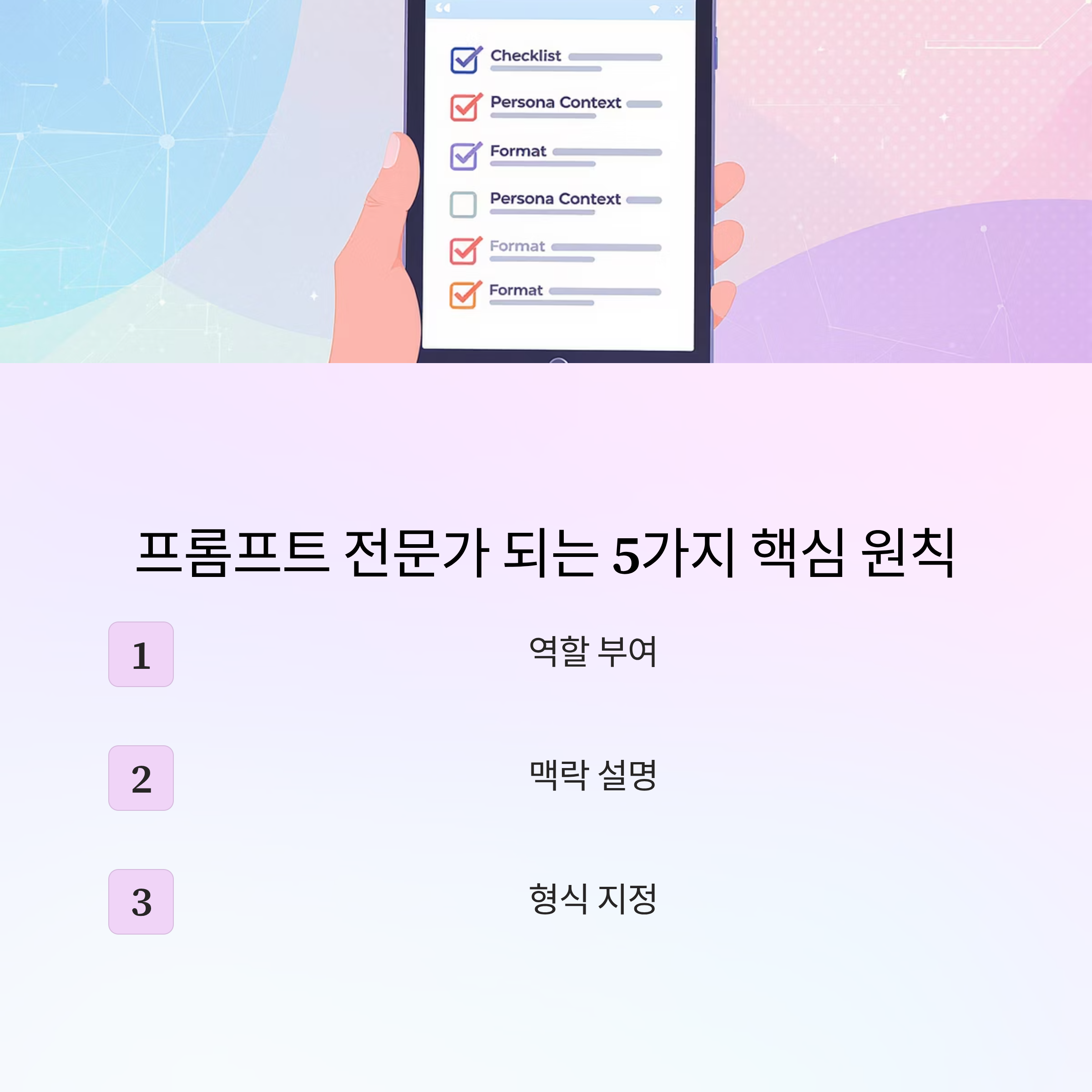 ✅ 3. 명확한 형식(Format) 지정하기: "블로그 글 형식으로, 서론-본론-결론 구조로 써줘" 처럼 원하는 결과물의 형태를 지정해야 해요.