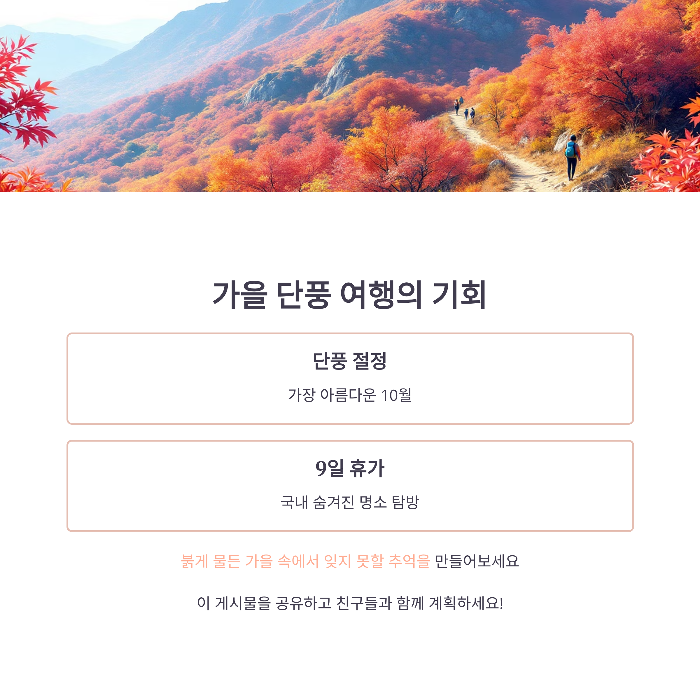 2️⃣ 국내여행: 10월은 단풍이 절정인 시기. 전국 방방곡곡 단풍놀이 계획!