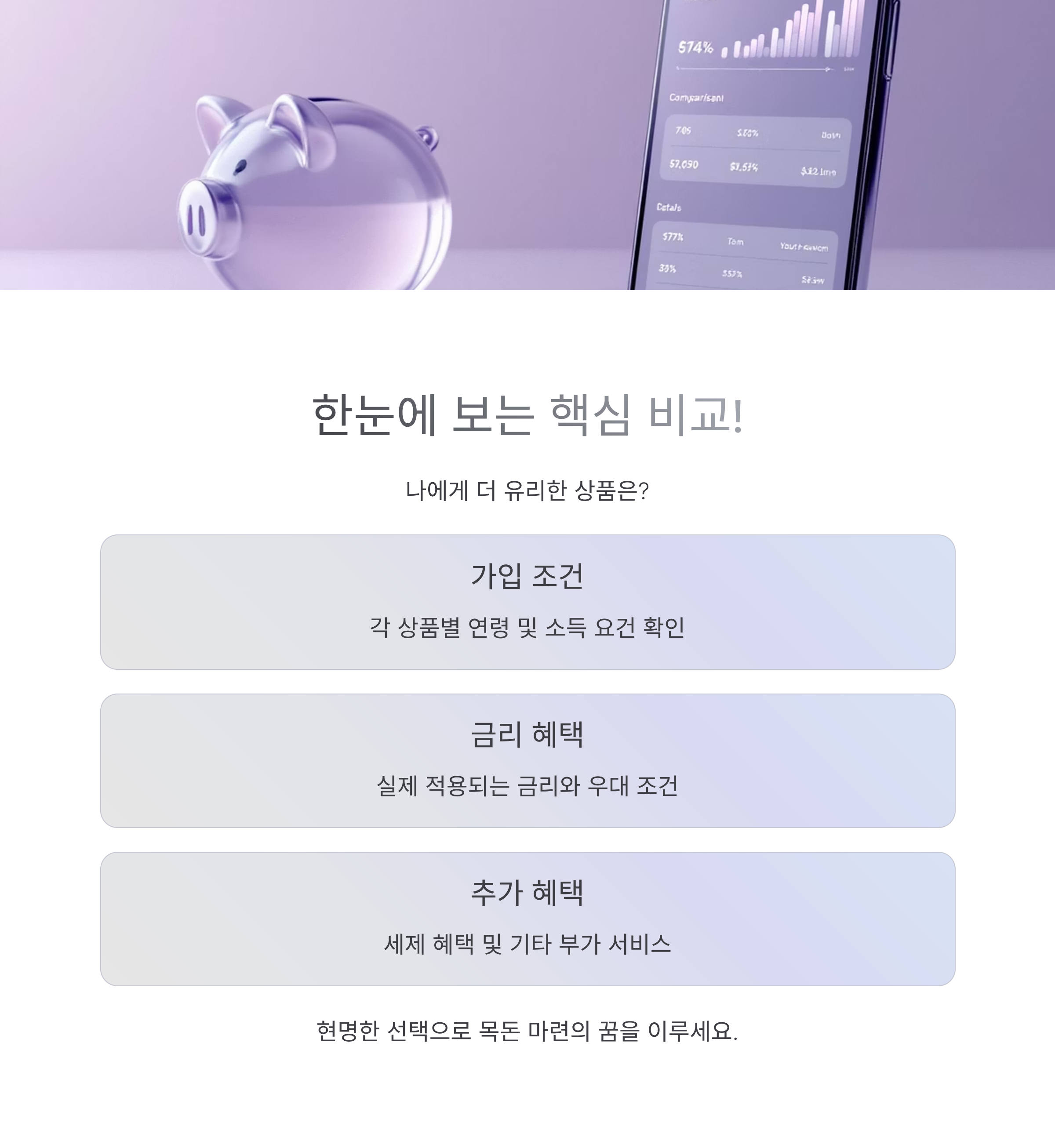 **가입 조건, 혜택, 유의사항 등 핵심 포인트별로 꼼꼼하게 비교 분석**해 드릴게요.