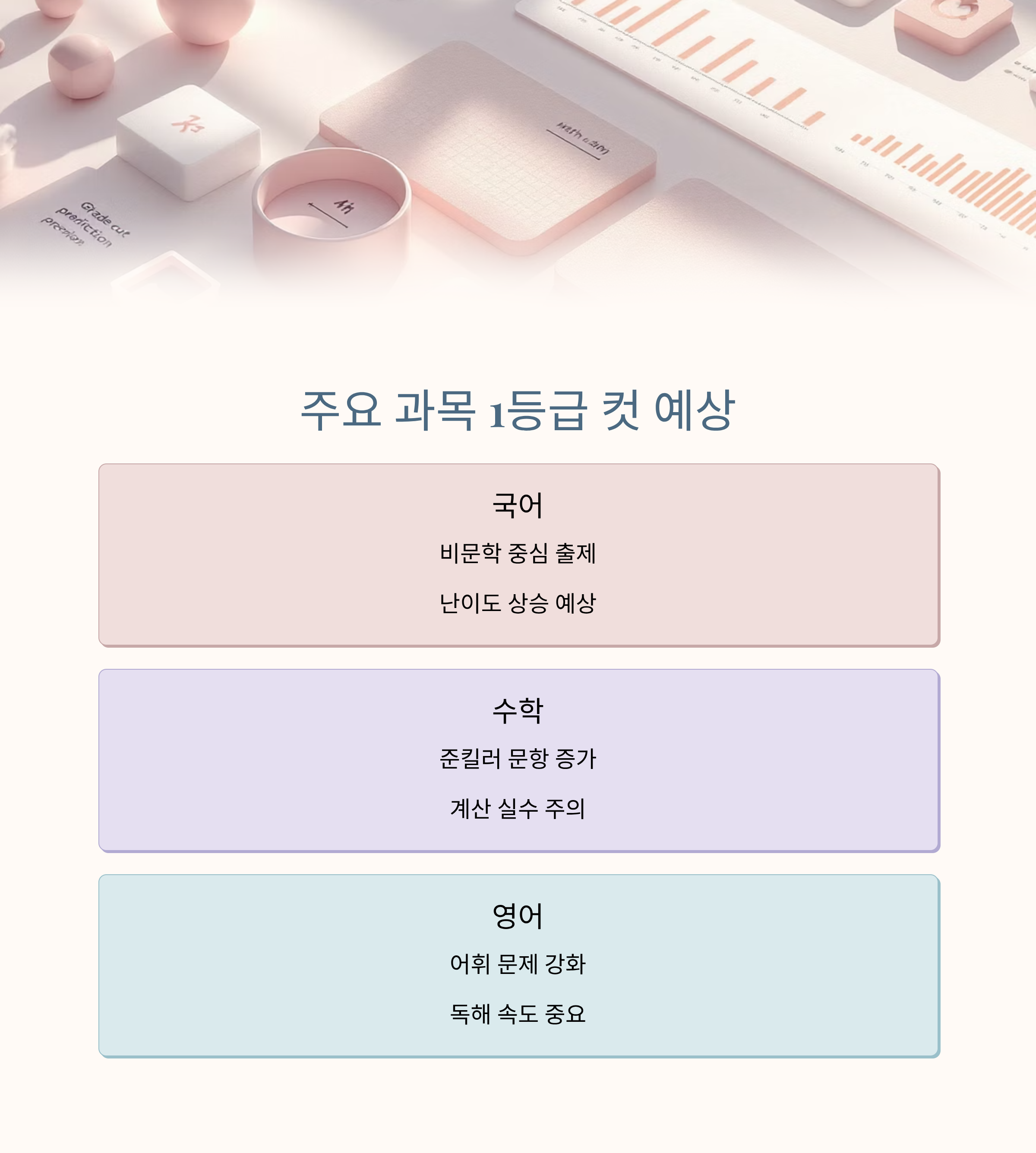 📊 2. 과목별 1등급 컷 예상 및 난이도 분석 (국어/수학/영어)