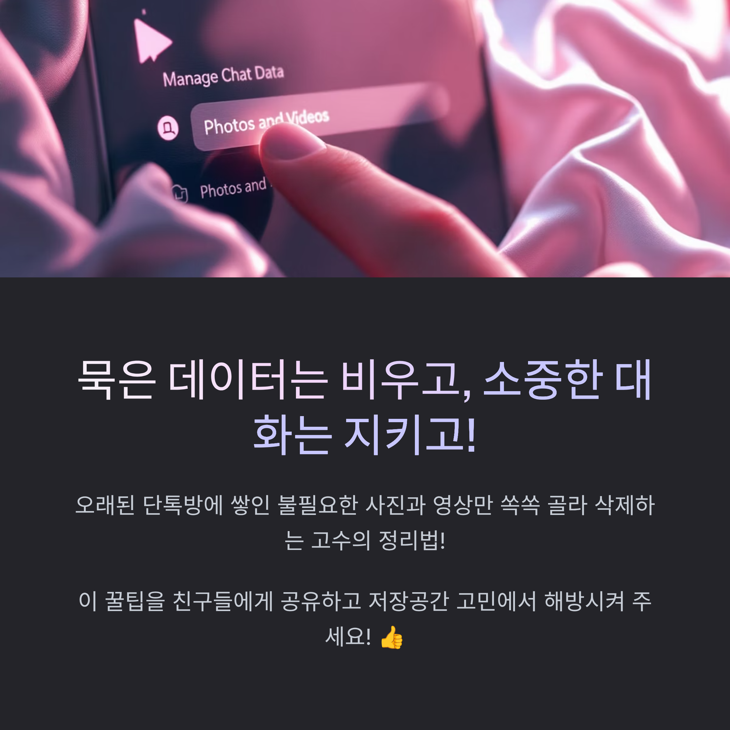 3. 더 많은 용량이 필요할 땐, '채팅방 데이터 관리'를 활용하되, 중요한 파일은 꼭 미리 백업해두세요.
