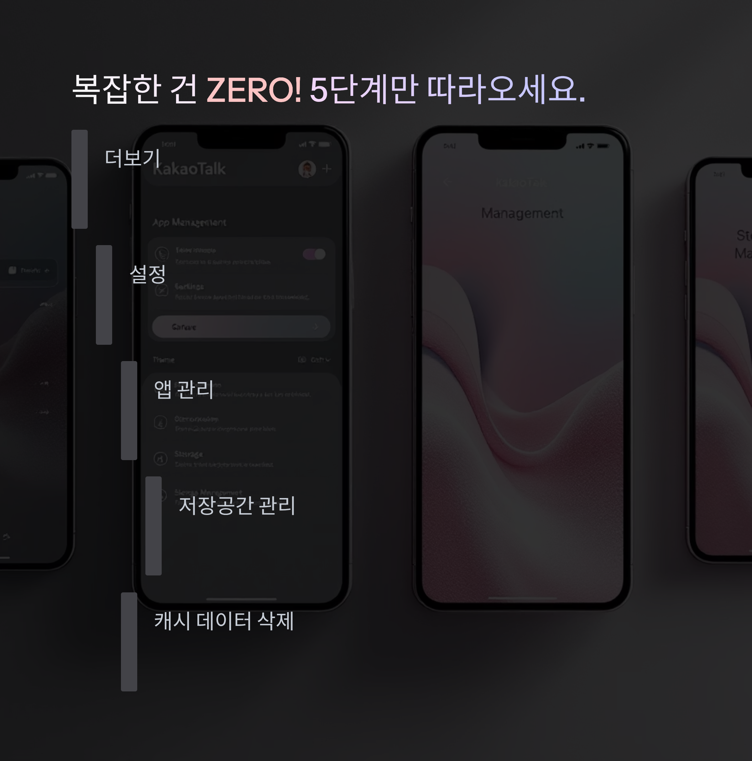 1. '캐시 데이터 삭제'는 대화 내용 걱정 없이 안전하니, 한 달에 한 번씩 주기적으로 해주세요.